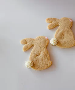 Celebrated’s adorable bunny-shaped sugar cookies, finished with soft buttercream cottontails and delicate pink noses.